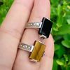 Square Tiger's Eye Gemstone Silver Ring